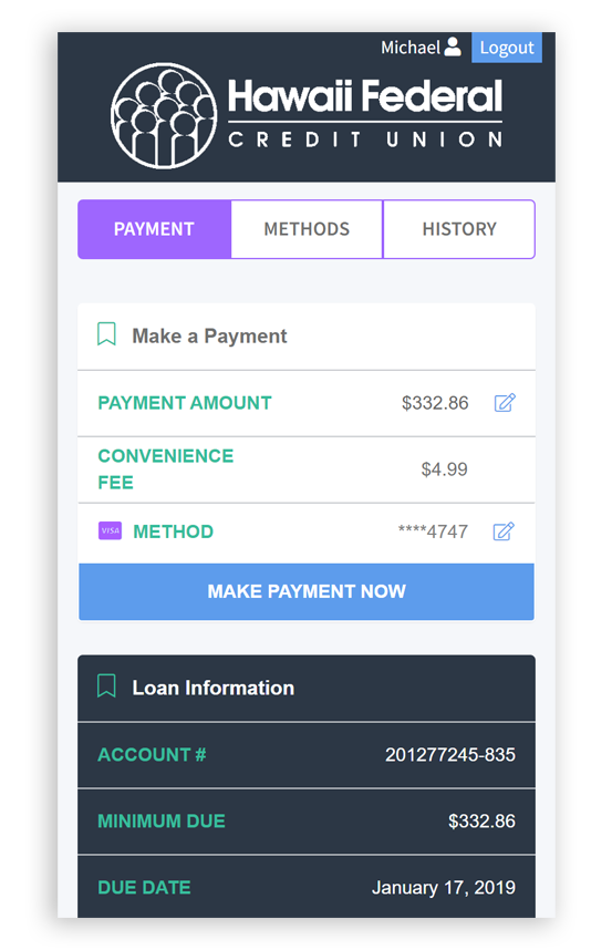 Make a payment to your Hawaii FCU loans or credit cards from any external account!
